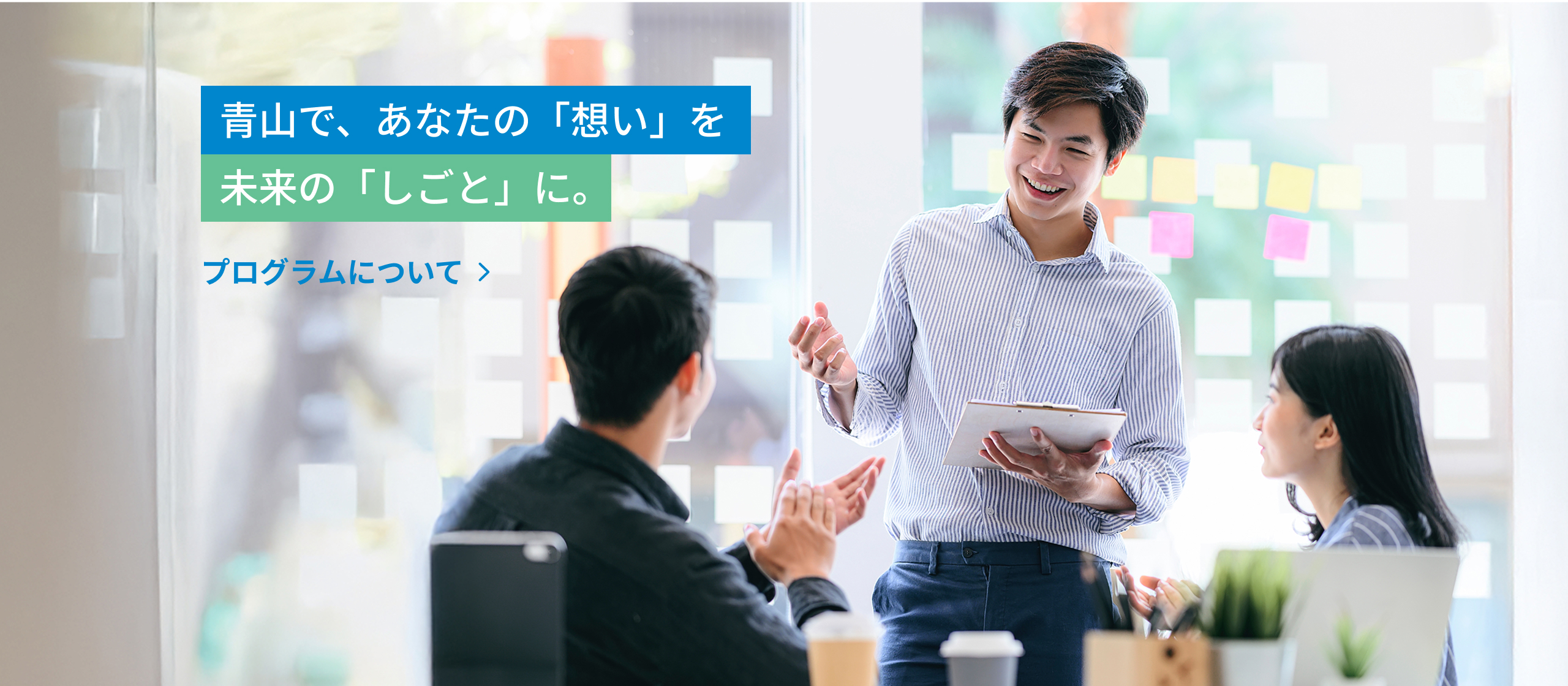 青山が抱える地域課題や社会的テーマを、自分ごととして捉え、創造的なアイデアで解決するための仕組みとサポートがあります。自分の挑戦が、誰かの幸せや街の未来につながる。そんな実感をここで。